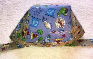 I have made a few baby / kids head bandanas with summer in my mind!!! These are truly great and can be ordered in many designs. They are also available in my organic fabrics of course. These bandanas will give your little one protection from the sun. They are made with cotton, so they can get wet and be washed. Ideal for holidays at the poolside or beach. For boys I have several pirate themed fabrics and for girls I have flowers and bright colors.